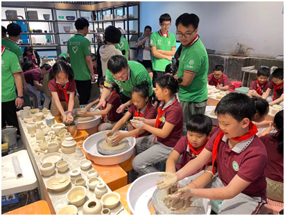 5月27日,学校附属小学学生代表在胡曙光团队研究生党支部志愿者协助下,走进我校国内首个特色陶瓷艺术创新创业梦工场,现场进行手工陶艺制作,实地感受陶瓷浑然天成的神奇窑变魅力和博大精深的陶瓷文化,同时大家还被梦工厂设计制作的抗疫志愿者公益纪念品深深感动。