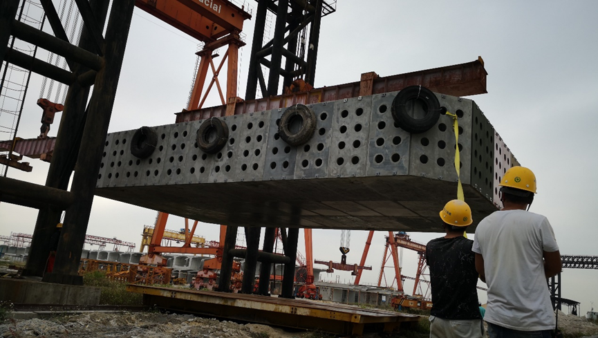 水中和教授团队的科研之路并非一帆风顺,他们在实践中不断遭遇各种挑战,但每一次困难都成为他们奋勇前进的强大动力。2018年,水教授团队与中交二航局携手合作,在广东中山成功建成我国首个“双壳通海”漂浮平台。该平台进行了长达半年的海试,并顺利通过了国家级科研项目专家组的结题验收。该平台采用“普通混凝土内浮箱 + 超高性能混凝土(UHPC)外壳”的复合结构,巧妙地平衡了浮力与重量、组合结构与多维冲击、综合性能与制造成本之间的关系。